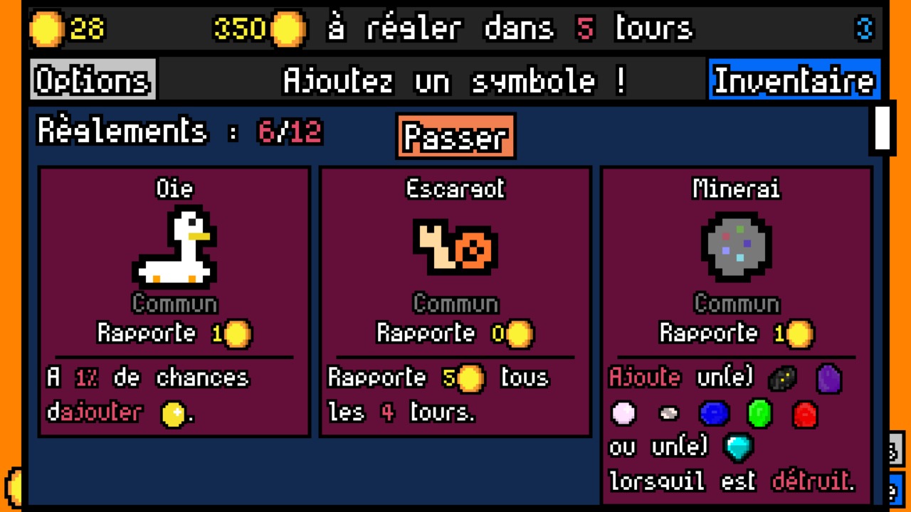 La Chance du Locataire combine l’imprévisible frisson des machines à sous avec la profondeur stratégique et la rejouabilité des deckbuilders classiques. Choisissez des symboles à ajouter à votre machine et observez leurs interactions vous rapporter des pièces à chaque tour - remplirez-vous votre deck de chats, de gemmes, de fruits… ?Luck be a Landlord est un jeu édité et développé par TrampolineTales dans le genre Deck-building, Roguelite et sorti en 2023 sur PC Windows